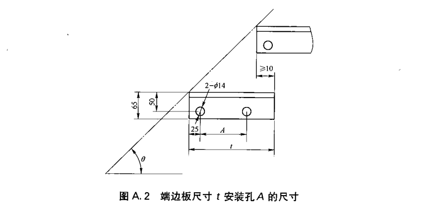 (9)踏步板采用螺栓連接的端邊板尺寸t安裝孔A尺寸見(jiàn)圖A.2及表A.1。